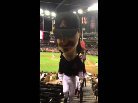 The Arizona Diamondbacks’ Legends Race presented by Henkel promotion takes place following the fifth inning of every home game. The Legends — 10-foot tall men in uniform with large foam heads — represent players who have made a significant contribution to the organization on the field (from left): Mark Grace, Luis Gonzalez, Matt Williams and Randy Johnson. The Legends run a race that starts near the right-field foul pole and continues on the warning track until the finish line at the on-deck circle near the D-backs dugout. Mark Grace has never won. Evidently, he’s often distracted. This group is on its way to being legendary.
